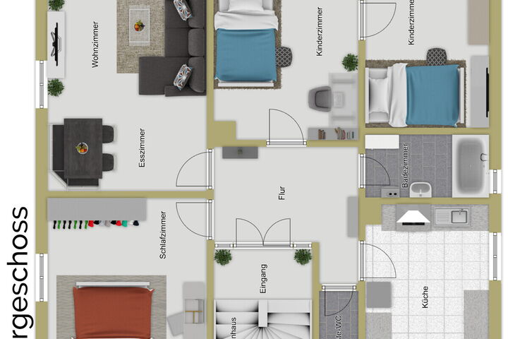 Im Obergeschoss befindet sich eine weitere 4-Zimmer-Wohnung mit ca. 80 m² Wohnfläche.