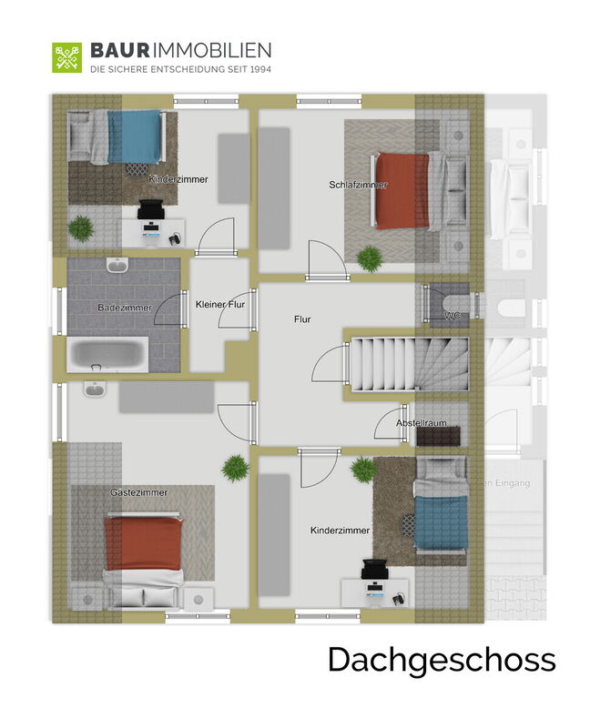 • Dachgeschoss: 4 weitere Zimmer, Bad aus den 1980er Jahren