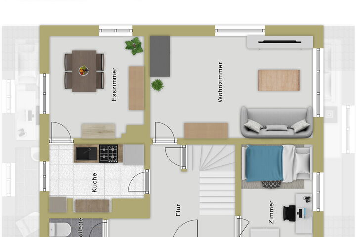 Das Haus wurde ca. 1960 in massiver Bauweise errichtet und verfügt über eine Wohnfläche von rund 93 m², die sich auf fünf Zimmer verteilt. Im Erdgeschoss werden Sie im Dielenbereich empfangen. Von hier aus gelangen Sie in die Küche, das Esszimmer, das Wohnzimmer sowie in ein weiteres Zimmer, das flexibel genutzt werden kann – beispielsweise als Arbeits-, Gäste- oder Kinderzimmer. Eine Gästetoilette rundet das Raumangebot auf dieser Ebene ab.