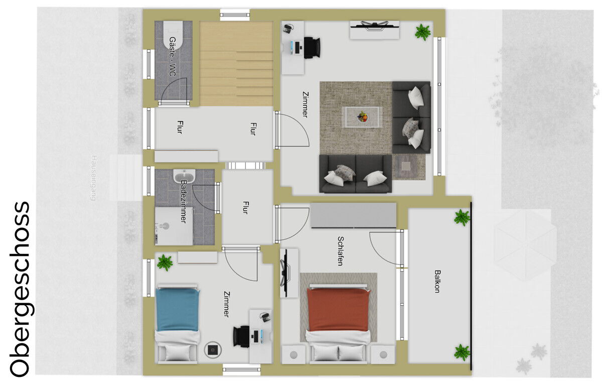 • Obergeschoss: Drei gut geschnittene Schlafzimmer, ein modernisiertes Hauptbad (2023) sowie ein weiteres separates WC. Ein Balkon ergänzt das Raumangebot.
