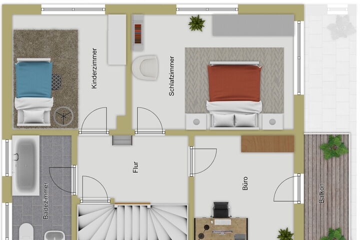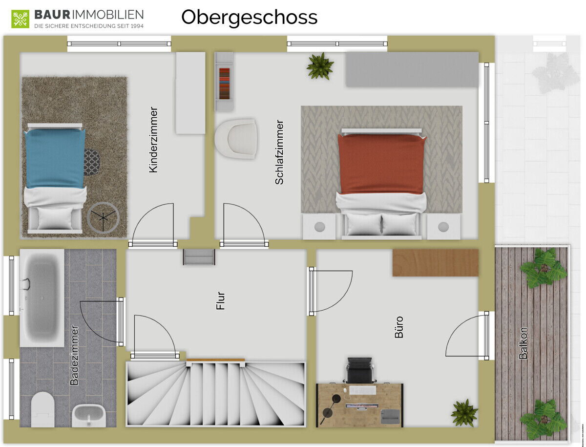 Das Dachgeschoss bietet zusätzliche Ausbaumöglichkeiten.