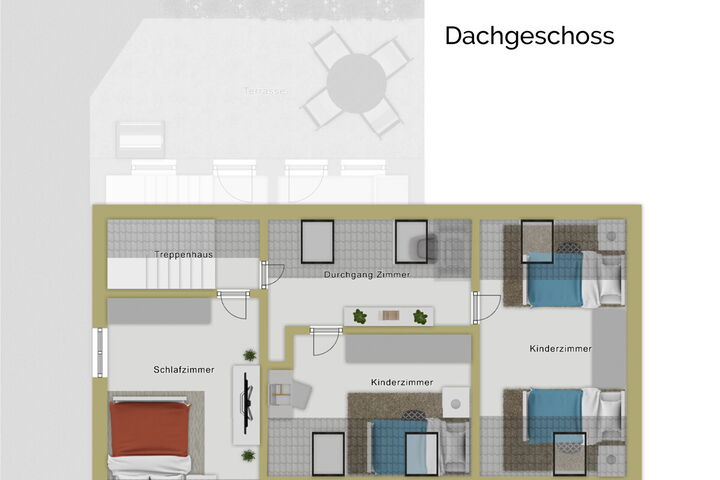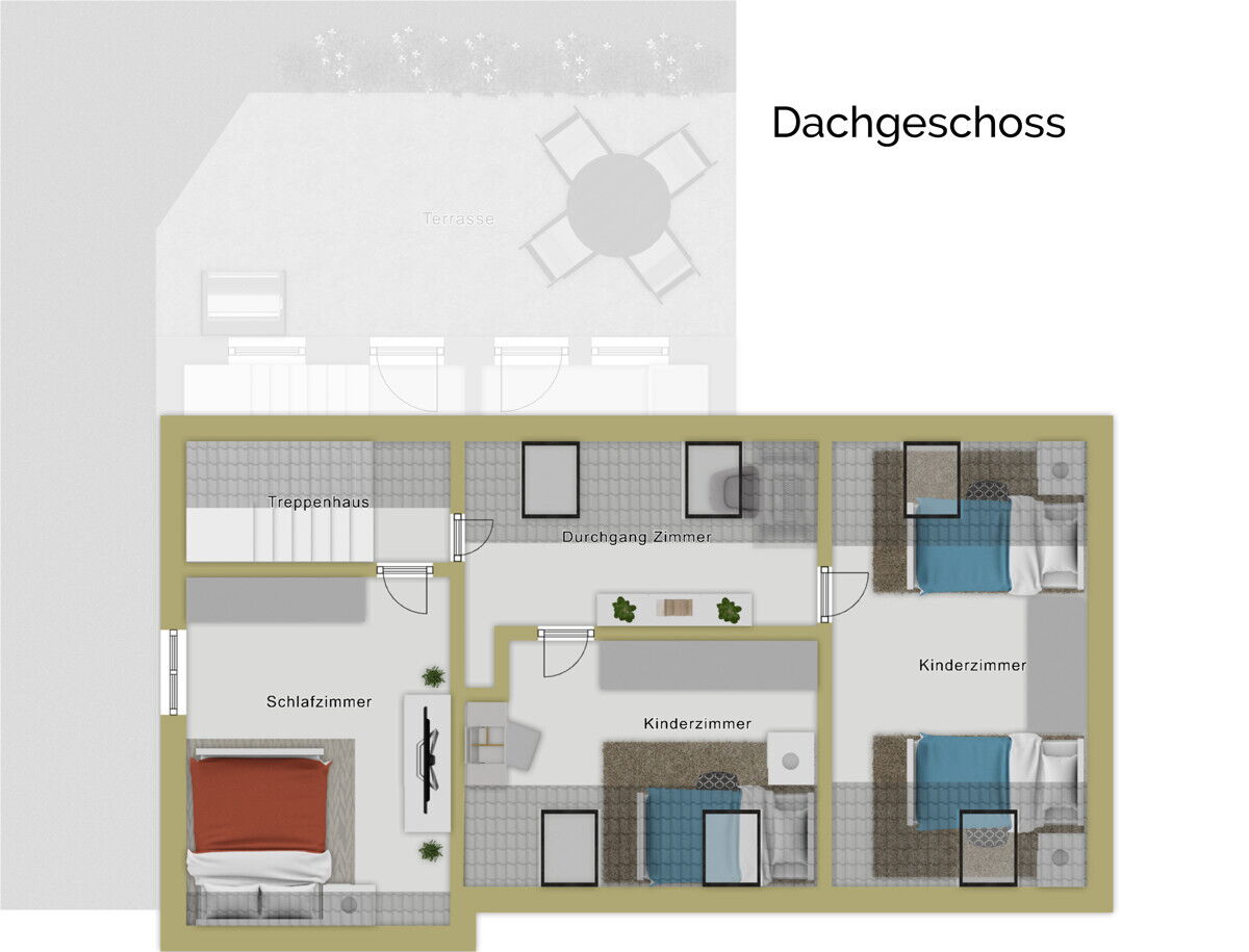 Die Immobilie verfügt über insgesamt 7 Zimmer, darunter ein großzügiger Wohnbereich, mehrere Schlafzimmer sowie ein separates WC. Die Küche wurde 2021 umfassend erneuert – inklusive neuer Böden, Wände und Einbauküche. Zwei Waschmaschinenanschlüsse stehen zur Verfügung: einer im Hauswirtschaftsraum, ein weiterer im Bad – praktisch für den Alltag.