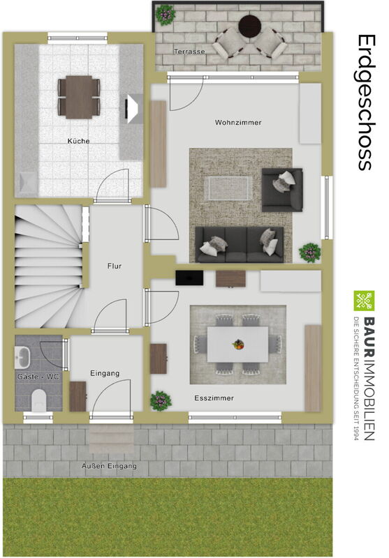 Der Garten bietet die Möglichkeit, sich individuell kreativ auszuleben – sei es mit Blumenbeeten, einem gemütlichen Sitzplatz oder einem Spielbereich für Kinder.