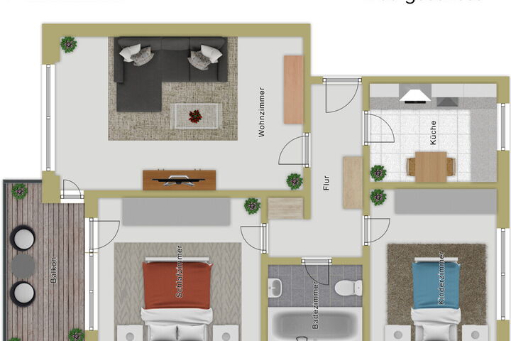 • zwei Schlafzimmer, eines ebenfalls mit Balkonausgang