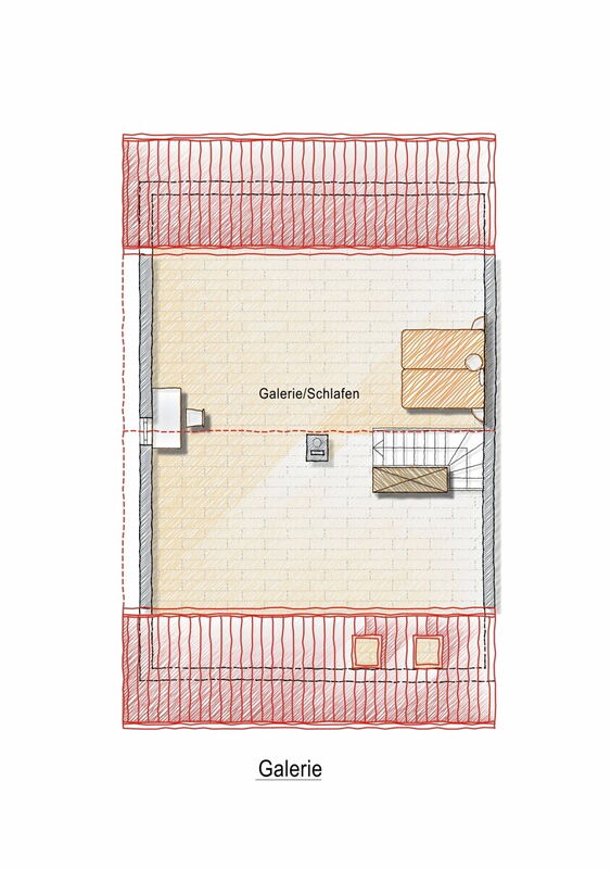 Im ersten Geschoss befinden sich das helle Wohnzimmer mit Zugang zur Küche und zum Balkon, das Badezimmer sowie ein separates WC. Das zweite Geschoss ist dem Schlafbereich vorbehalten und bietet einen ruhigen Rückzugsort.