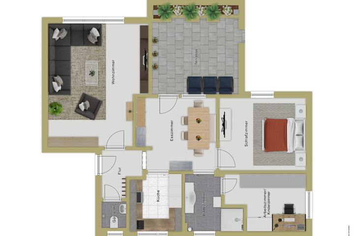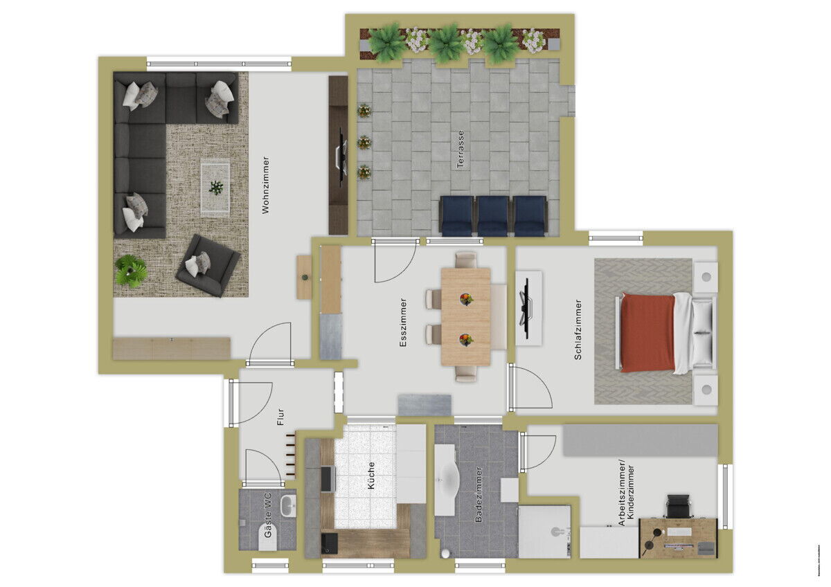 Die Wohnung liegt im Hanggeschoss eines Mehrfamilienhauses aus dem Jahr 1966 und bietet ca. 75 m² Wohnfläche, die sich auf drei Zimmer verteilen. Die Wohnung befindet sich in einem gepflegten Zustand; zudem wurden in den letzten Jahren mehrere Renovationen sowohl innerhalb der Wohnung als auch am Gebäude durchgeführt. Beim Betreten der Wohnung gelangen Sie in den einladenden Dielenbereich mit Garderobe. Direkt angrenzend befindet sich das WC. Das helle und großzügige Wohnzimmer lädt zum Wohlfühlen ein. Die Küche ist mit einer modernen Einbauküche ausgestattet und an den Essbereich angrenzend gestaltet. Vom Esszimmer aus haben Sie direkten Zugang zur großen Terrasse mit elektrischer Markise, auf der Sie entspannte Stunden im Freien genießen können. Das Tageslichtbadezimmer verfügt über eine große Dusche und ein Waschbecken. Darüber hinaus stehen ein Schlafzimmer sowie ein weiteres Zimmer zur Verfügung, das sich ideal als Arbeitszimmer, Kinderzimmer oder Gästezimmer nutzen lässt.