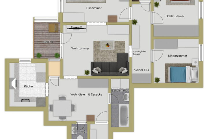 Die aktuellen Eigentümer haben die ursprünglich als 4-Zimmer-Wohnung konzipierte Einheit in eine 3,5-Zimmer-Wohnung umgestaltet, wodurch ein besonders großzügiger Wohn- und Essbereich entstanden ist. Mit geringem Aufwand lässt sich die Wohnung jedoch wieder in die ursprüngliche 4-Zimmer-Aufteilung zurückführen.
