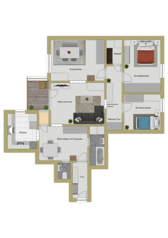 Die aktuellen Eigentümer haben die ursprünglich als 4-Zimmer-Wohnung konzipierte Einheit in eine 3,5-Zimmer-Wohnung umgestaltet, wodurch ein besonders großzügiger Wohn- und Essbereich entstanden ist. Mit geringem Aufwand lässt sich die Wohnung jedoch wieder in die ursprüngliche 4-Zimmer-Aufteilung zurückführen.