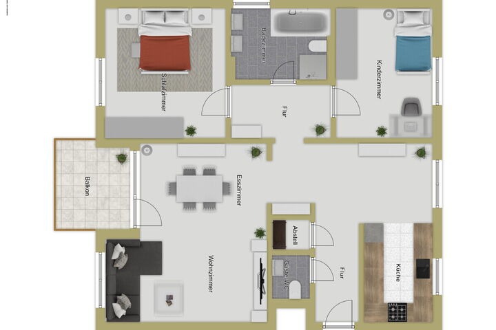 Der großzügige Wohn- und Essbereich bildet das Herzstück der Wohnung. Von hier aus gelangt man direkt auf den sonnigen Balkon, der zum Entspannen im Freien einlädt. Das Schlafzimmer und das zweite Zimmer bieten flexible Nutzungsmöglichkeiten – etwa als Kinderzimmer, Büro oder Gästezimmer. Das Tageslichtbad ist hell und gepflegt, zusätzlich steht ein Gäste-WC zur Verfügung. Ein praktischer Abstellraum rundet das Raumangebot ab.