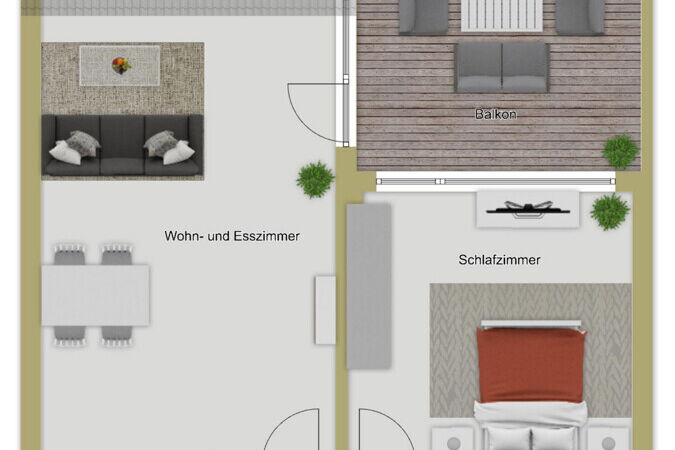 Beim Betreten der Wohnung gelangen Sie zunächst in den freundlichen, hellen Flur. Dank der hochwertigen und topmodernen Glastüren fällt auch hier stets viel Tageslicht ein und sorgt für ein angenehmes Raumgefühl. Geradeaus öffnet sich das großzügige Wohn- und Esszimmer mit integrierter Küche. Von hier aus haben Sie direkten Zugang zum Balkon, der zum Entspannen im Freien einlädt.