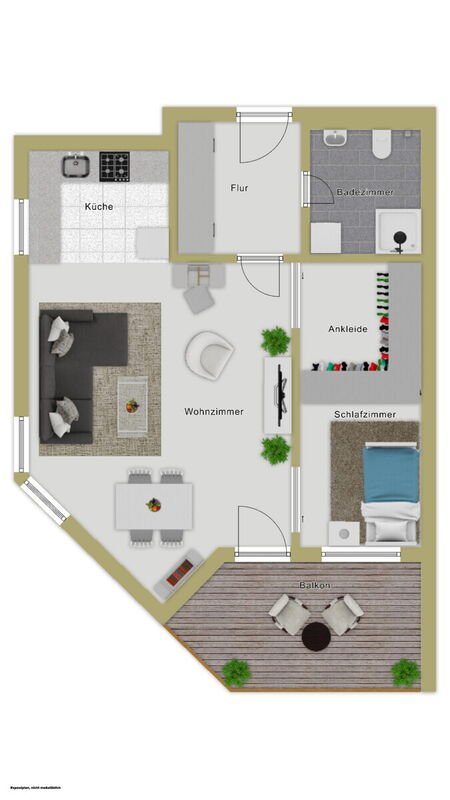 Der helle Wohn- und Schlafbereich bietet ausreichend Platz zur individuellen Gestaltung und schafft eine angenehme Wohnatmosphäre. Durch eine praktische Raumtrennung kann die 1-Zimmer-Wohnung effektiv fast als 3-Zimmer-Wohnung genutzt werden, bei Bedarf kann die Trennung aber natürlich auch rückgebaut werden. Erweitert wird der Wohnraum zusätzlich noch durch einen Balkon, welcher zum Entspannen einlädt und für ein freieres Raumgefühl sorgt.