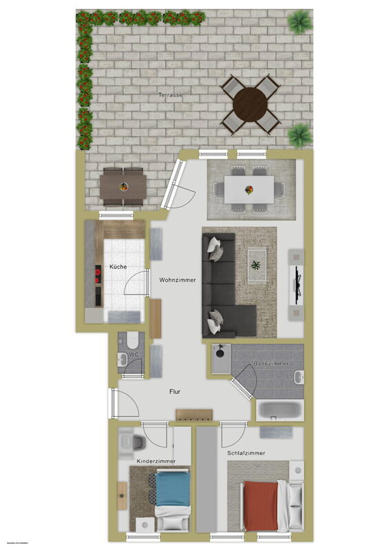 Die großzügige, ca. 82 m² große Wohnung aus dem Baujahr ca. 1990 besticht durch eine durchdachte Raumaufteilung: Zwei helle und geräumige Schlafzimmer, eine separate Küche, ein innenliegendes Badezimmer mit Dusche und Badewanne sowie ein separates WC bieten angenehmen Wohnkomfort. Das Herzstück der Wohnung bildet der lichtdurchflutete Wohn- und Essbereich mit direktem Zugang zur gemütlichen Terrasse – ein idealer Ort, um zur Ruhe zu kommen und den Alltag hinter sich zu lassen.